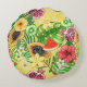 Cojín Redondo Mezcla tropical, flores y hojas en amarillo