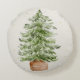 A beautiful, elegant round throw pillow featuring a minimalist watercolour Christmas tree illustration. Perfect for a neutral-inspired holiday home decor theme.