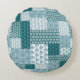 Una moda redonda de almohadas o colchón, con un patrón de imitación de estilo étnico Faux Patchwork en Verde azulado y blanco. Este patrón, que forma parte de la colección "Boho Bazaar" de Posh & Painterly, se puede personalizar fácilmente cambiando la dirección o la escala del mosaico de patrones para un aspecto completamente diferente.