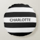 Cojín Redondo Moda rayas negras y blancas monograma nombre perso