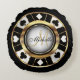 Cojín Redondo Monograma Chip de póquer negro, blanco y dorado
