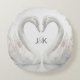 Cojín Redondo Monograma de Pareja de Novios Cisnes Románticos