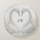 Cojín Redondo Monograma de pareja de novios con cisnes romántico