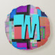 Cojín Redondo Monograma geométrico coloreado inspirado en los añ
