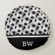 Cojín Redondo Monograma Patrón de bolas de fútbol blanco negro