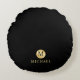 Cojín Redondo Monograma personalizado de lujo negro y oro
