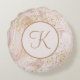 Cojín Redondo Monograma Purpurina de oro de giro de mármol rosa