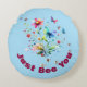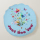 Añada un toque acogedor a su espacio con esta almohada redonda, mostrando un encantador diseño de acuarela floral simple con un monograma de "Just Bee You". El color de fondo del diseño es un azul suave, con delicadas flores acuarelas, abejas lúdicas y mariposas elegantes que aportan un aspecto caprichoso y natural. Esta almohada ofrece confort y estilo, perfecto para cualquier habitación que necesite un toque de calidez e inspiración. Ya sea como un regalo o para su propia casa, es un encantador recordatorio para abrazar su singularidad!