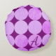 Cojín Redondo Monograma violeta, púrpura y círculos rosados