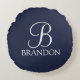 Cojín Redondo Monograma y nombre del guión personalizado azul de