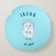 almohada redonda con un monstruo blanco adorable sobre fondo turquesa