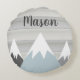 Bebé Almohada redonda de montaña con nombre personalizado y aventura espera el tema de la madera. ¡Esta almohada redonda de bebé de personalizable es una gran idea para un regalo de ducha de bebé para cualquier habitación de bebé/niñera! ¡Personaliza el nombre en segundos! Os ruego que estallemos rallando más elementos coincidentes aquí https://www.zazzle.com/collections/gray_mountain_adventure_awaits_ao146bs-119442672115967451?rf=238722231659402553 —>> Desea un diseño especial, por favor contáctenos en adlyowl*at)gmail.com