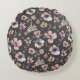 Moody Boho Watercolor Blush Wildflowers Pattern Round Pillow matches a range of home decor products with the same design and colors and will be perfect for your moody bedroom decor or as an accent in your living area or guest room.. The moody, dramatic botanical pattern features lush watercolor wildflowers in soft blush, lavender, and peach hues, set against a deep charcoal grey background. The high-contrast design captures the spirit of Dark Academia and Maximalist decor, offering a sophisticated, luxurious touch for your home decor. The painterly style and rich color palette ensure a beautiful, high-end look.