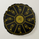 Cojín Redondo Motivo negro y dorado con trompetas y monograma