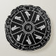 Cojín Redondo Motivos en blanco y negro con saxofones y texto