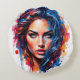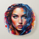 Retrato eléctrico, de color de una mujer pintada con agudos goteos, salpicaduras y luminosos tonos de neón azul, verde azulado, magenta y naranja. La mezcla de realismo y energía abstracta de arte callejero hace una declaración sorprendente para posters, impresiones de lienzo, té y estuches de teléfono. Obra de arte de alta resolución.