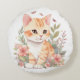 Cojín Redondo Naranja dulce Tabby Kitten con Flores Acuarela