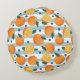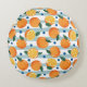 Cojín Redondo Naranjas de fondo a rayas, patrón de verano.