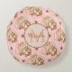 Navidades Marrón Gingerbread Casa Pink Plaid Fir Trees Patrón Cojín decorativo Redondo.