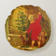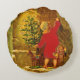 Vintage tarjeta de Navidades húngaros en una almohada redonda personalizado. Una niña pequeña con abrigo rojo sostiene un árbol y hace sonar el timbre de la puerta. Aunque no parece pobre -está descalza. Una postal muy especial impresa en este artículo .Editada y aplicada en este artículo por Alma Wad .
