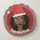 Cojín Redondo Navidades de mujeres negras Santa Hat, puntos rojo