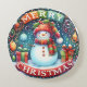 Cojín Redondo Navidades de Snowman y ornamentos coloridos