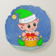 Cojín Redondo Navidades educados: elfo bebé con azul claro