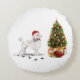 Cojín Redondo Navidades graciosos de White Poodle con árbol