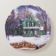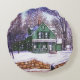 Cojín Redondo Navidades retro verde camino de invierno