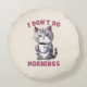 Comience el día con un toque de humor y encanto felino con esta almohada de "No hago mañanas". Con un gatito gris somnoliento sosteniendo una taza de café, esta adorable obra de arte es perfecta para los amantes del gato y del café. Un regalo delicioso para cualquiera que no sea una persona de la mañana, este diseño le agrega un toque divertido a su rutina diaria.