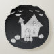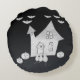 Cojín Redondo Noche de Halloween con casa embrujada, murciélagos
