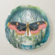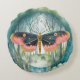 Una delicada polilla rosa y marrón sobre el fondo de un misterioso bosque azul y verde.