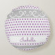 Cojín Redondo Nombre de escritura con puntos y remolinos púrpura