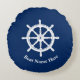 Su nombre de barco personalizado con casco de rueda náutica en un cojín de almohada redondeado Personalizado.