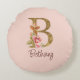 Cojín Redondo Nombre personalizado lámina dorada rosas rosadas C