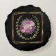 Cojín Redondo Oro Negro Abstracto Floral Púrpura Boho Minimalist