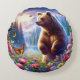 Cojín Redondo Oso y mariposas alegres y coloridos