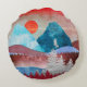 Un hermoso paisaje abstracto con escena montañosa y forestal y un águila aterrizando en un árbol en vibrantes tonalidades de azul, cian, plata y crimson.