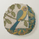 Cojín Redondo Pájaro azul amarillo y Verde azulado encaramado en