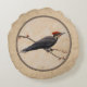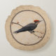Pintura detallada de un pájaro carpintero apilado sobre una rama de árbol, acentuada por un fondo con estampado marrón.