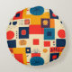 Patrón vibrante y juguetón compuesto por varias formas geométricas y orgánicas. El fondo es de un color cálido, parecido a la crema, que contrasta con formas audaces de color azul marino, rojo, naranja y amarillo.