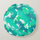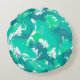 Cojín Redondo Patrón abstracto de líquido turquesa y blanco