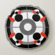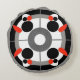 Obra de arte circular abstracta con formas geométricas en tonos rojos, negros y grises que forman una simetría intrincada. Diseño vibrante y moderno perfecto para fines artísticos, decorativos o conceptuales creativos.