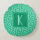 Decore su sofá con esta almohada redonda de motivos de diamante verde de tres tonos de monograma. Presenta un patrón de diamante geométrico en tres tonalidades de verde, con una inicial en verde claro contra un cuadrado verde oscuro. Personalízalo con tu inicial. Dale a tu espacio vital un toque de color extra.