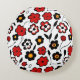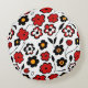 Cojín Redondo Patrón de flores rojas, negras y blancas