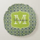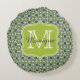 Cojín Redondo Patrón de flores verdes de monograma