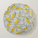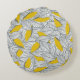 Cojín Redondo Patrón de hoja gris y amarillo.