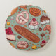 Cojín Redondo Patrón de panadería de dibujo a mano. Diferencia