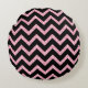 Cojín Redondo Patrón de zigzag de chevron negro Purpurina rosa