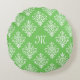 Cojín Redondo Patrón moderno monogramado de Damasco Verde brilla